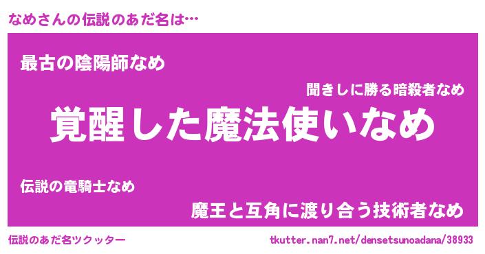 | 男性向けラノベタイトル風あだ名 | 『なめ~年齢イコール彼女いない歴の魔法使い~』 |