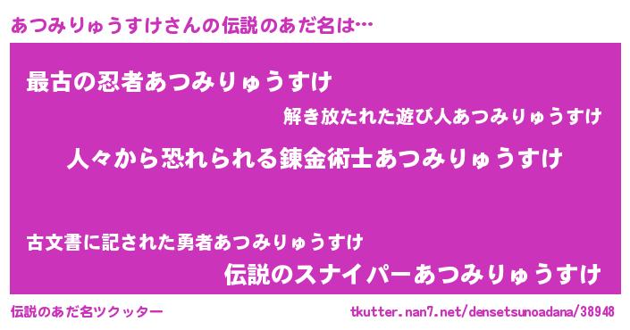 | ヒーロー風カッコイイあだ名 | 『正義の使者あつみりゅうすけ』 |