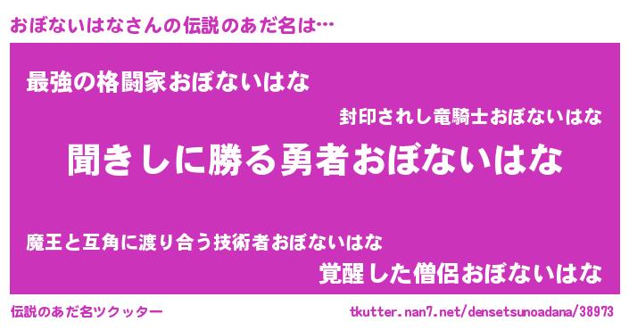 | 意味不明あだ名 | 『住所不定無職おぼないはな(81歳)』 |
