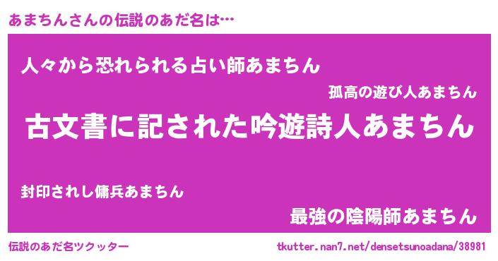 | ヒーロー風カッコイイあだ名 | 『ネオアマチン』『愛の使者あまちん』 |
