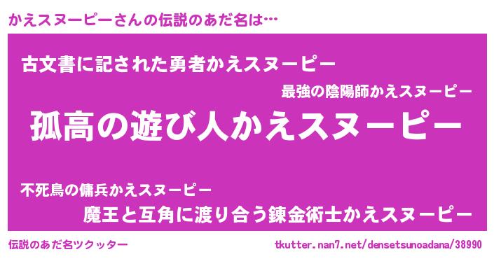 | 意味不明あだ名 | 『とにかく怪しいかえスヌーピー』 |