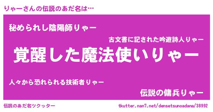 | ヒーロー風カッコイイあだ名 | 『天弓騎士リャ』『ウルトラりゃーマン』 |