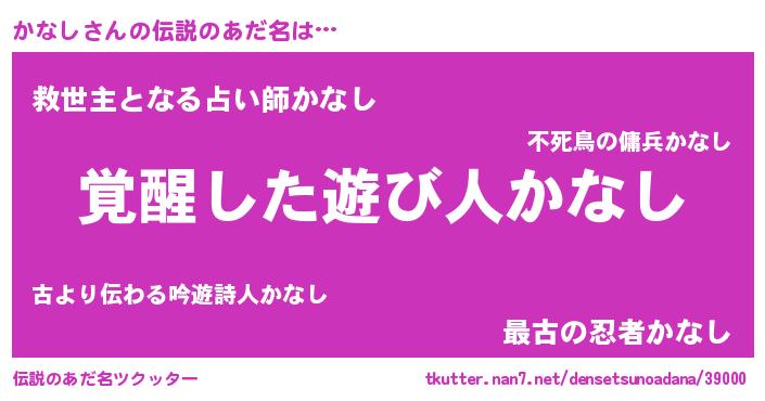 | ヒーロー風カッコイイあだ名 | 『炎刃騎士カナ』『天空の使者かなし』 |