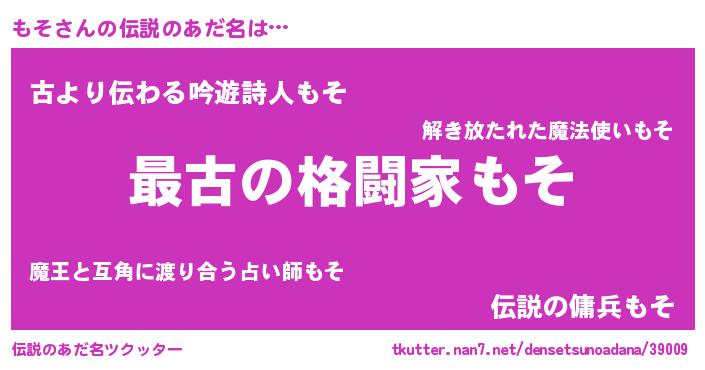 | 男性向けラノベタイトル風あだ名 | 『もそに滅ぼされるだけの簡単なお仕事です』 |