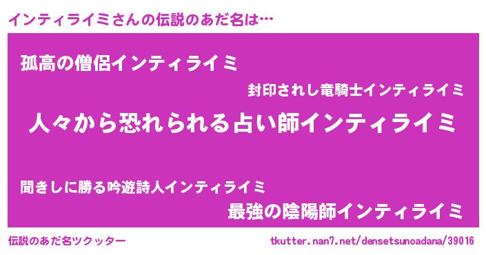 | ヒーロー風カッコイイあだ名 | 『正義の使者インティライミ』 |
