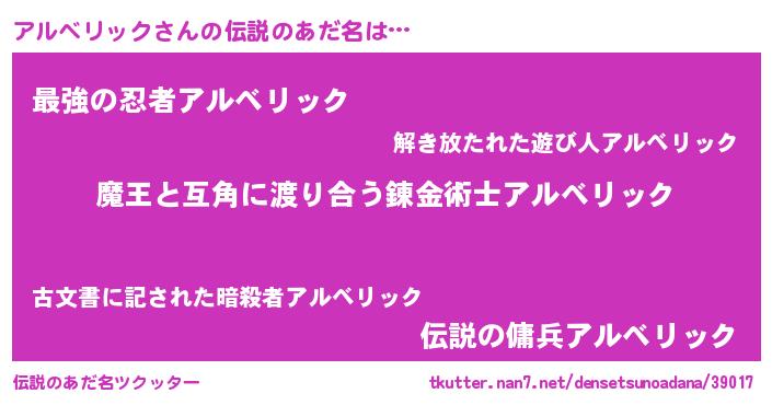 | ヒーロー風カッコイイあだ名 | 『友情の使者アルベリック』 |