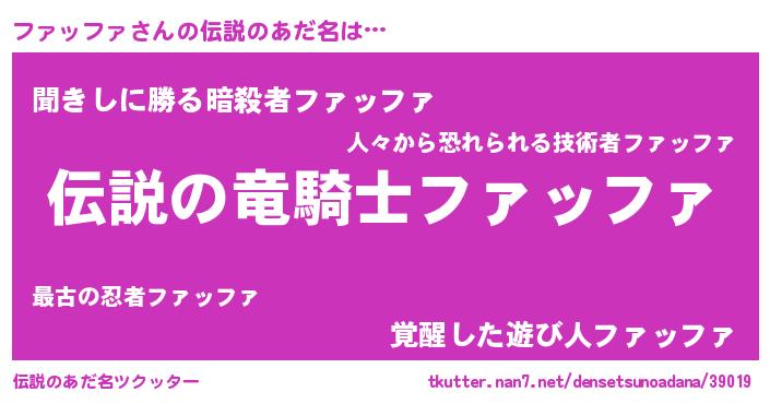 | 男性向けラノベタイトル風あだ名 | 『ファッファの憂鬱』『緋弾のファッファ』 |