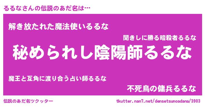 | 意味不明あだ名 | 『るるなフォーエバー』『自称るるな』 |