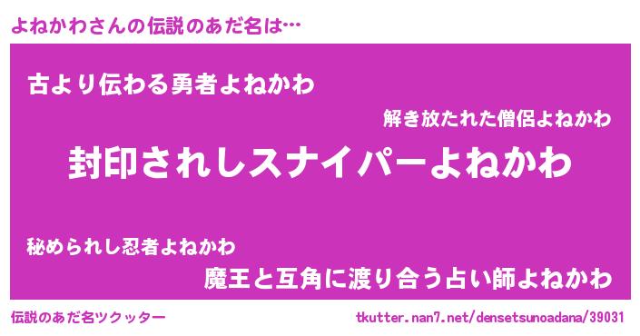 | 胡散臭い通販商品みたいなあだ名 | 『億万長者になれる霊験あらたかなお札…その名も「よねかわ」』 |