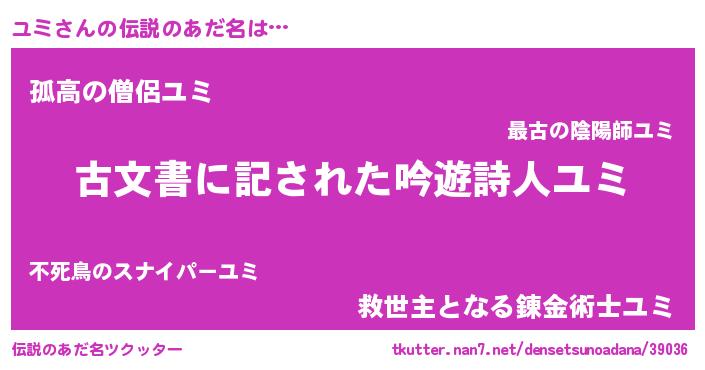 | ファンタジー風あだ名 | 『ユミディッシュ』『ファントムユミス』 |