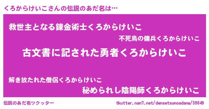 | 意味不明あだ名 | 『永久保存くろからけいこ』 |