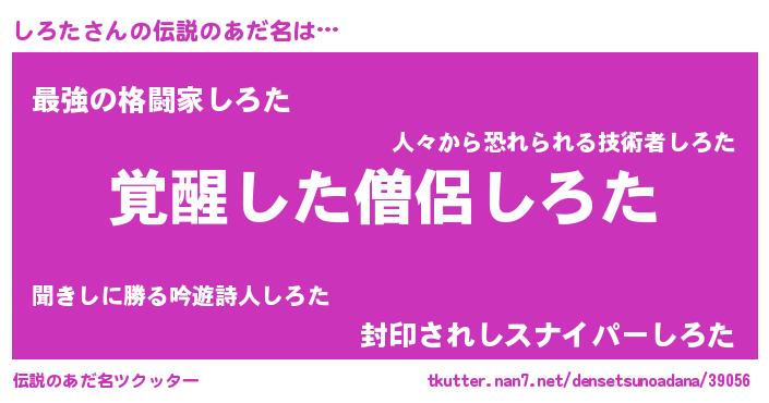 | 意味不明あだ名 | 『住所不定無職しろた(59歳)』 |