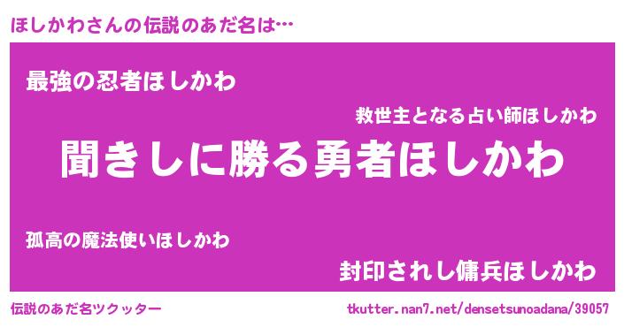 | 男性向けラノベタイトル風あだ名 | 『ホシカワスレイヤー』 |