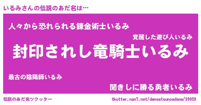 | 意味不明あだ名 | 『住所不定無職いるみ(12歳)』『自称いるみ』 |