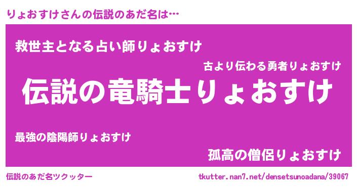 | 男性向けラノベタイトル風あだ名 | 『りょおすけの憂鬱』 |