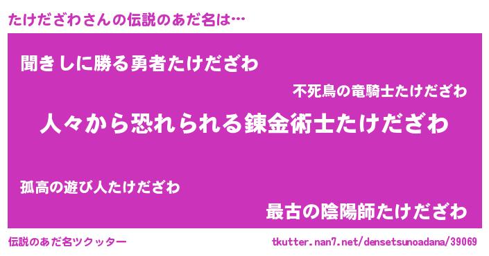 | 男性向けラノベタイトル風あだ名 | 『タケダザワスレイヤー』 |