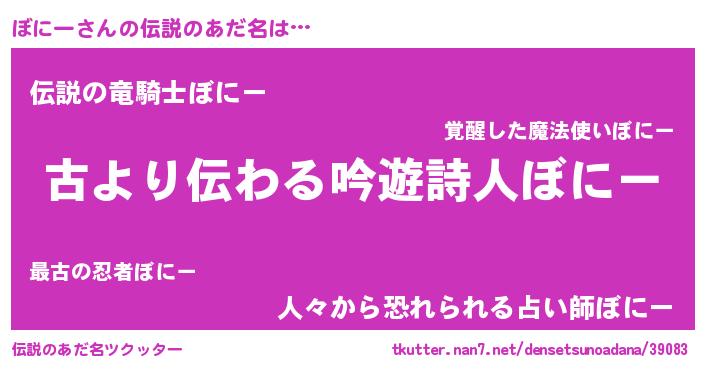 | ヘコむあだ名 | 『ぼにー(笑)』『ぼにもー』『牛乳』 |