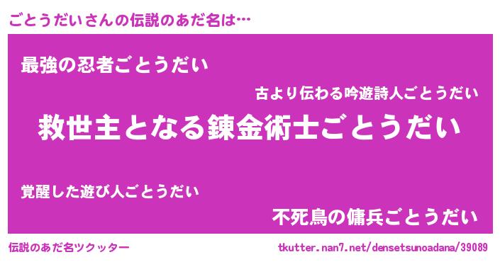 | ヒーロー風カッコイイあだ名 | 『慈愛の使者ごとうだい』『仮面ゴトダー』 |