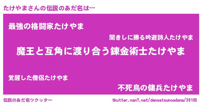 | ポケモン風あだ名 | 『メロタッケ』『タケゴンZ』 |
