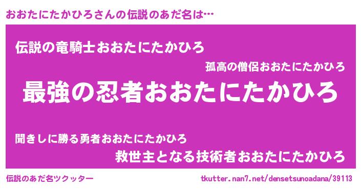 | 意味不明あだ名 | 『住所不定無職おおたにたかひろ(62歳)』 |