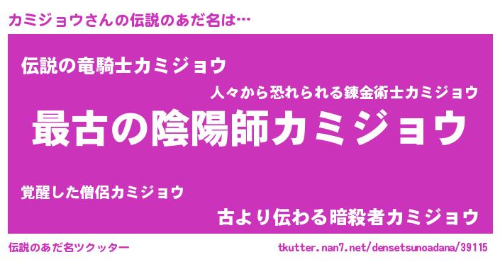 | ファンタジー風あだ名 | 『ゼカミトゥ』『エターナルカミジョウー』 |