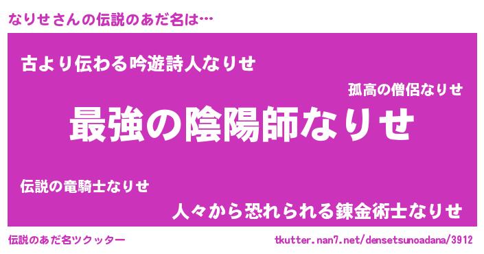 | 女子向けラノベタイトル風あだ名 | 『なりせの玉の輿計画!』『闇のなりせ』 |