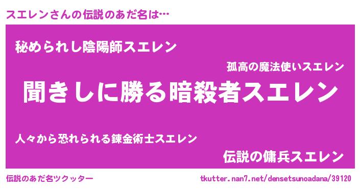 | 意味不明あだ名 | 『住所不定無職スエレン(50歳)』 |