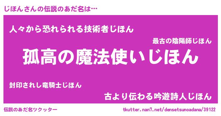 | 意味不明あだ名 | 『しいたけ科じほん属』『自称じほん』 |