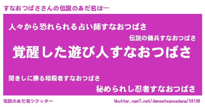| 男性向けラノベタイトル風あだ名 | 『うちのすなおつばさが世界を掌握している!』 |