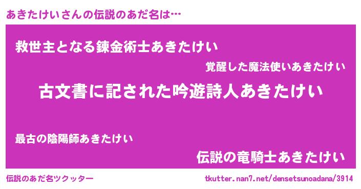 | 意味不明あだ名 | 『永久保存あきたけい』 |