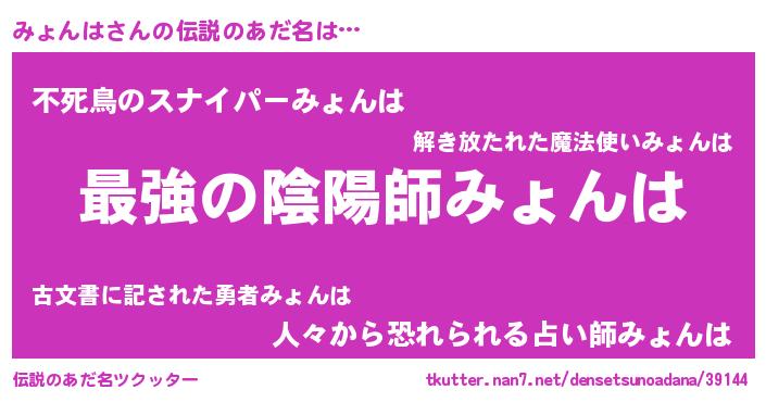 | 意味不明あだ名 | 『自称みょんは』『みょんはフォーエバー』 |