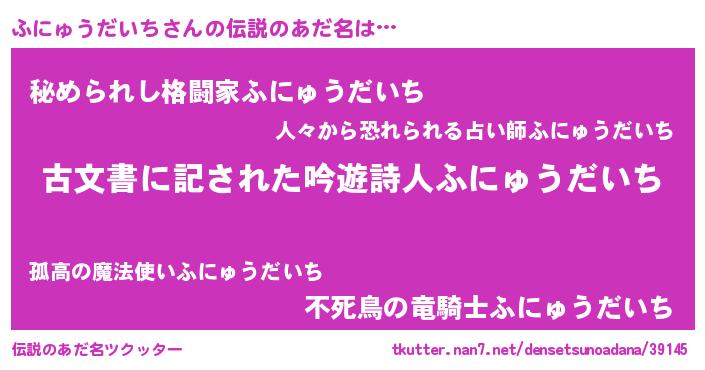 | 意味不明あだ名 | 『住所不定無職ふにゅうだいち(13歳)』 |