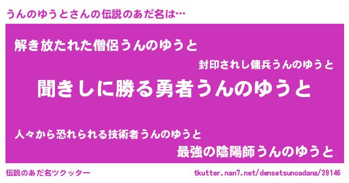 | ヒーロー風カッコイイあだ名 | 『ネオウンノユウト』『仮面ウンダー』 |