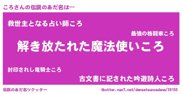 | 女子向けラノベタイトル風あだ名 | 『ころの卵を拾いまして』『闇のころ』 |