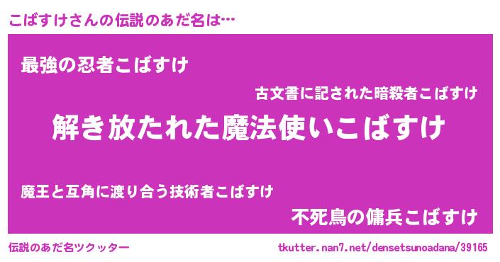 | 男性向けラノベタイトル風あだ名 | 『ダンジョンにこばすけを求めるのは間違っているだろうか』 |