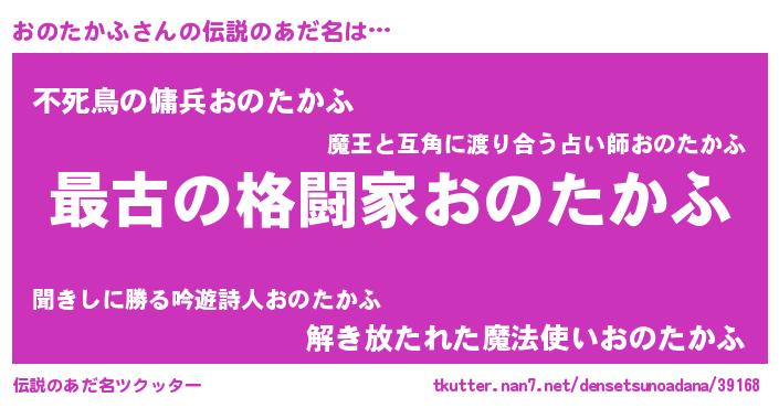 | ヒーロー風カッコイイあだ名 | 『サイバー戦士オノタカフ』 |