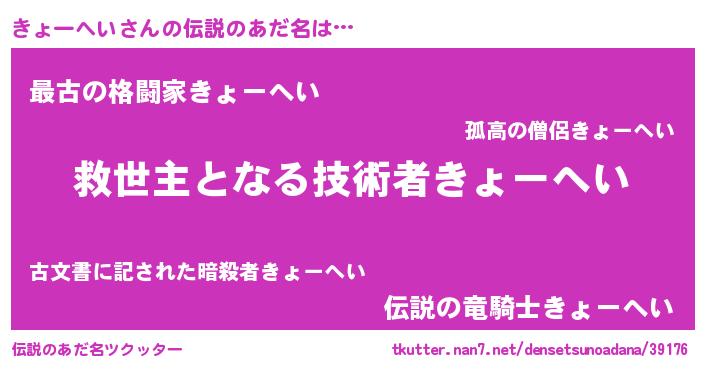 | ヒーロー風カッコイイあだ名 | 『究極戦士キョーヘイ』『幻影騎士キョ』 |