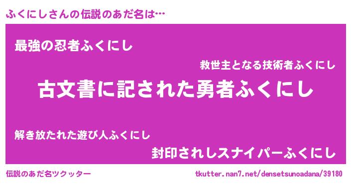 | 意味不明あだ名 | 『永久保存ふくにし』『自称ふくにし』 |