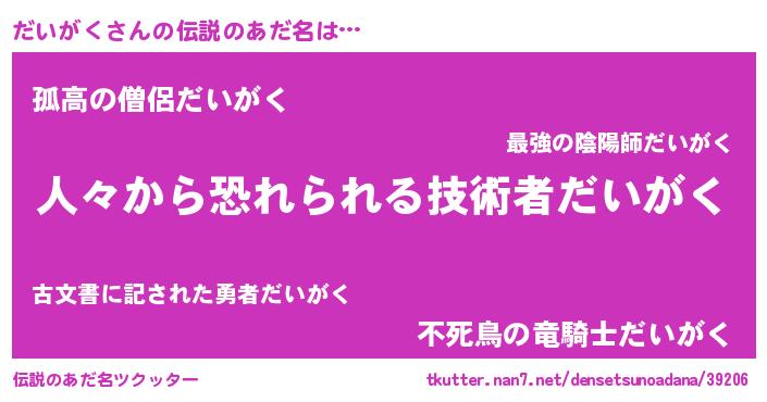 | ヒーロー風カッコイイあだ名 | 『仮面ダイダー』『正義の使者だいがく』 |
