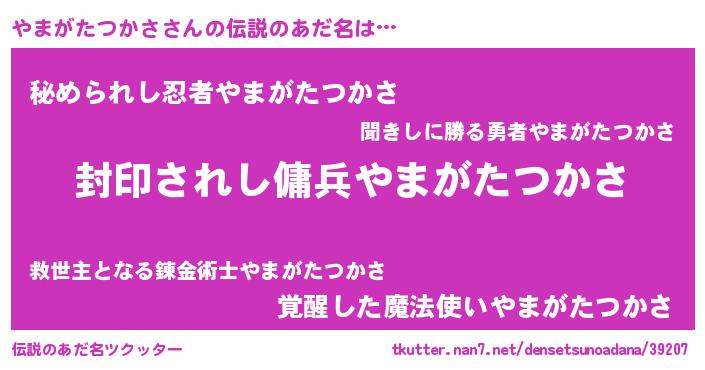| 男性向けラノベタイトル風あだ名 | 『ヤマガタツカサアートオンライン』 |