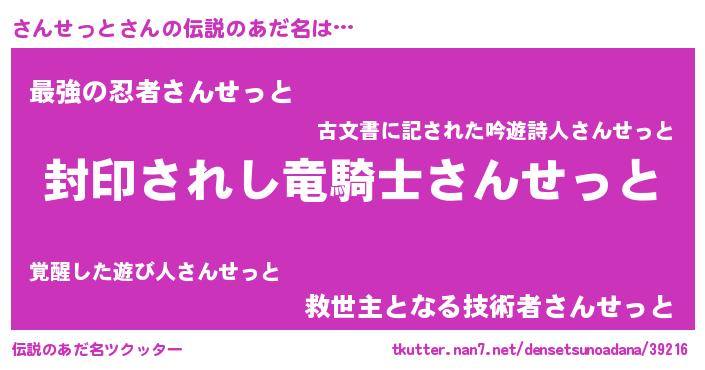 | 胡散臭い通販商品みたいなあだ名 | 『億万長者になれるブレスレット…その名も「さんせっと」』 |