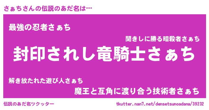 | ヒーロー風カッコイイあだ名 | 『スーパーサァチ』『ウルトラさぁちマン』 |