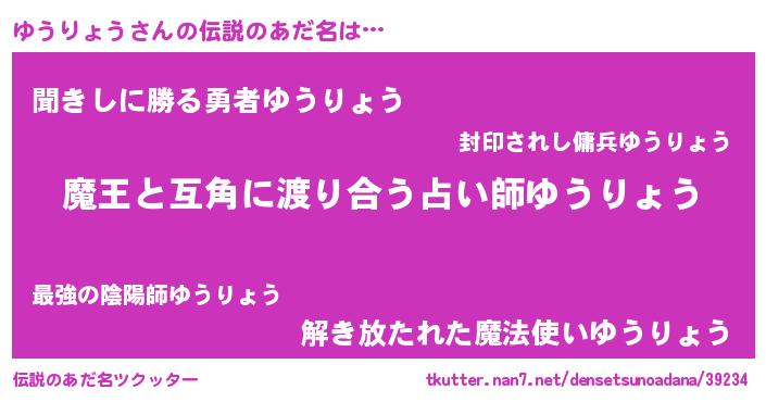 | ヒーロー風カッコイイあだ名 | 『慈愛の使者ゆうりょう』『仮面ユウダー』 |