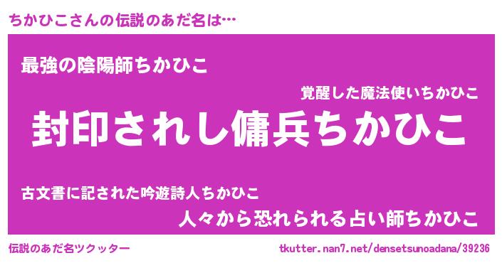 | ヒーロー風カッコイイあだ名 | 『スーパーチカヒコ』『仮面チカダー』 |