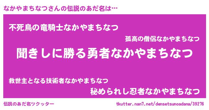 | 意味不明あだ名 | 『住所不定無職なかやまちなつ(93歳)』 |