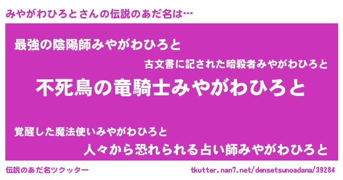 | 欧米人風あだ名 | 『みやがわひろと・ステッグマイヤー』 |