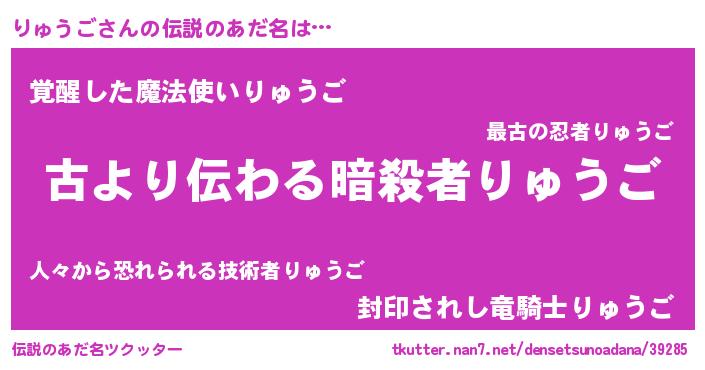 | ヘコむあだ名 | 『りゅうご(苦笑)』『りゅっちょ』 |
