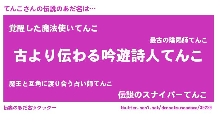 | 意味不明あだ名 | 『自称てんこ』『永久保存てんこ』 |