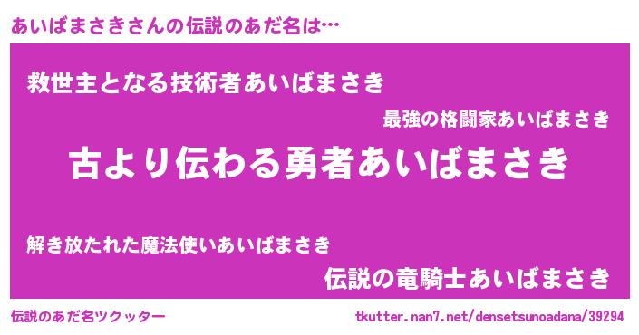 | ヘコむあだ名 | 『あいばまさき(遠い目)』『あいにー』 |