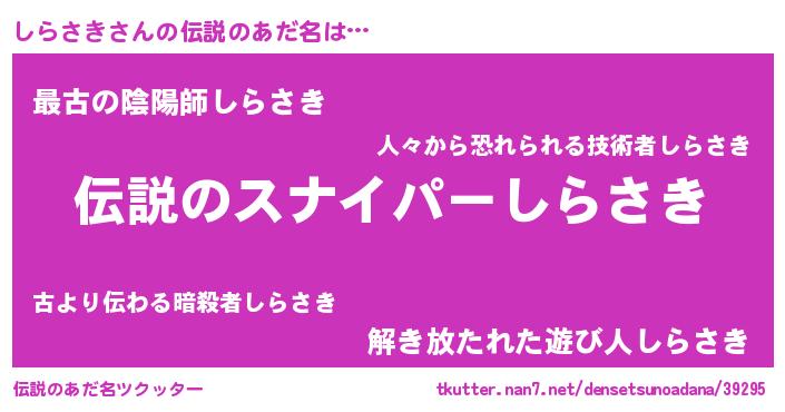 | 意味不明あだ名 | 『ペロリンしらさき』『自称しらさき』 |